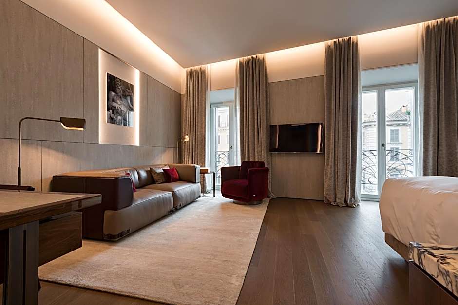 After a day full of Roman wonders, retreat to one of Fendi Private Suites' exquisite accommodations, where elegance dances with comfort. Whether you choose a sumptuous Suite Superior, spacious enough for you and your friends, or perhaps one of the stylish Junior Suites with a stunning city view, every detail is curated to make you feel like royalty. And if you're traveling as a couple, the romantic ambiance of the Palazzo Suite awaits you, featuring cozy finishes and a plush Queen-sized bed, creating a perfect little haven for your intimate escape.